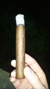 I take a sip of the Elijah Craig and let it rest on my palate for about ten seconds, absorbing the toasted oak, vanilla, and slight sugar tones into my mouth. First puff of the cigar with the bourbon still lingering, I taste spicy coffee, pepper, and a slight bitterness which does tone down after a few more puffs. The smoke is white and moderately thick, with a strong peppery smell. The flavor evens out a bit losing some of the spice – still very strong on flavor though, and exhibiting smoothness not common of similar cigars. The ash is incredibly tight, hanging on for the entire first third, and then some.